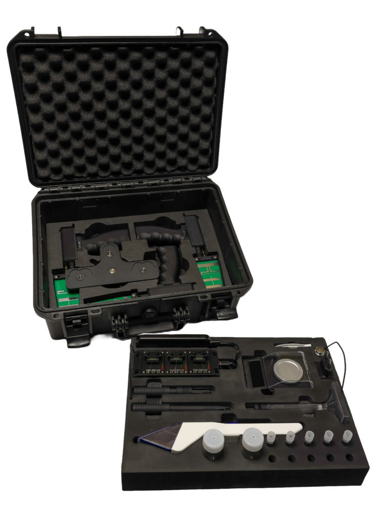 Es wurde ein spezieller Empfänger entwickelt, der mit einer Drohne verbunden werden kann und mit dem die Signalstärke auf der Fernbedienung angezeigt werden kann. Dies bietet einen wichtigen Vorteil, da die Empfindlichkeit und Reichweite erheblich erhöht werden, wenn man aus größerer Höhe suchen kann. Die Reichweite wird dabei auf 2 Kilometer erweitert.