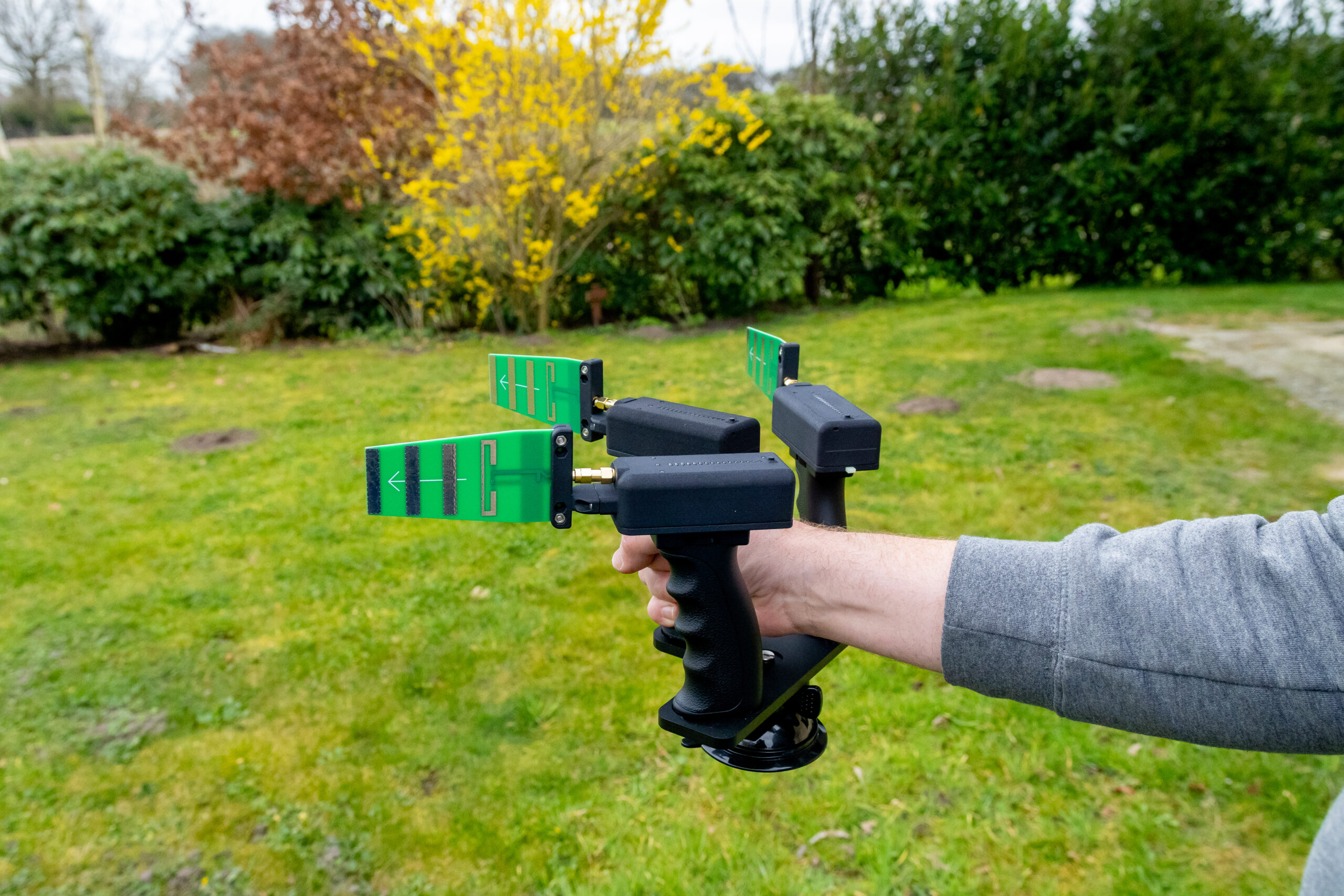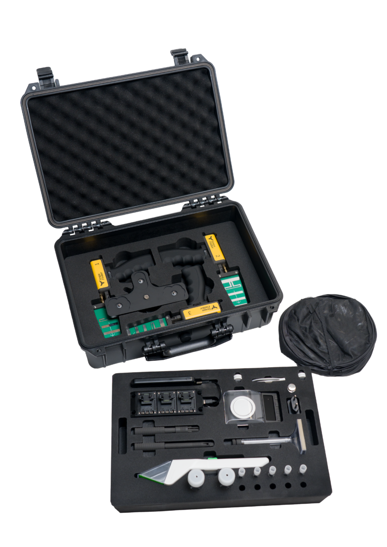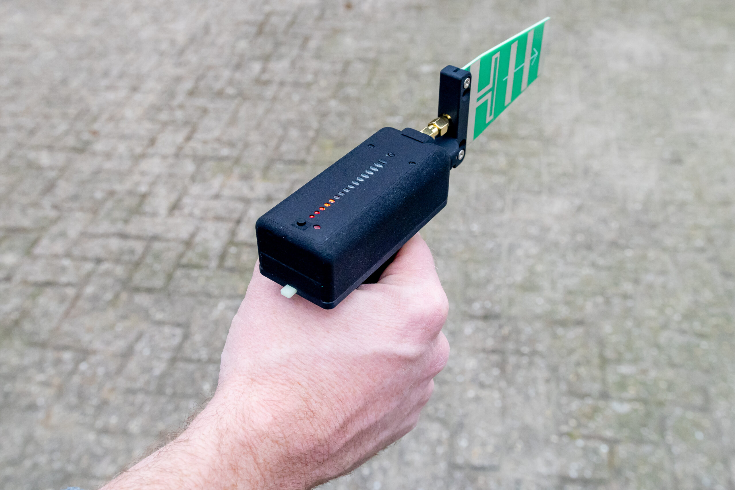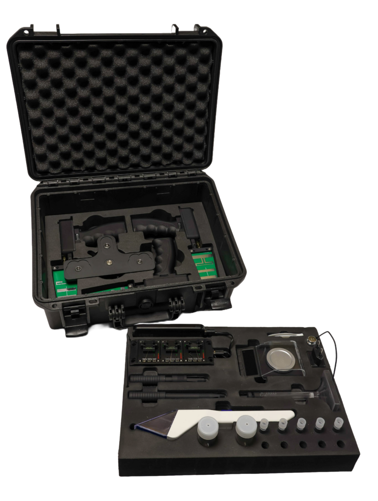 Un récepteur spécial a été développé qui peut être connecté à un drone, permettant d’afficher la puissance du signal sur la télécommande. Cela offre un avantage important, car la sensibilité et la portée sont considérablement accrues lorsque l’on peut effectuer des recherches à partir d’une hauteur plus élevée. La portée est ainsi étendue à 2 kilomètres.